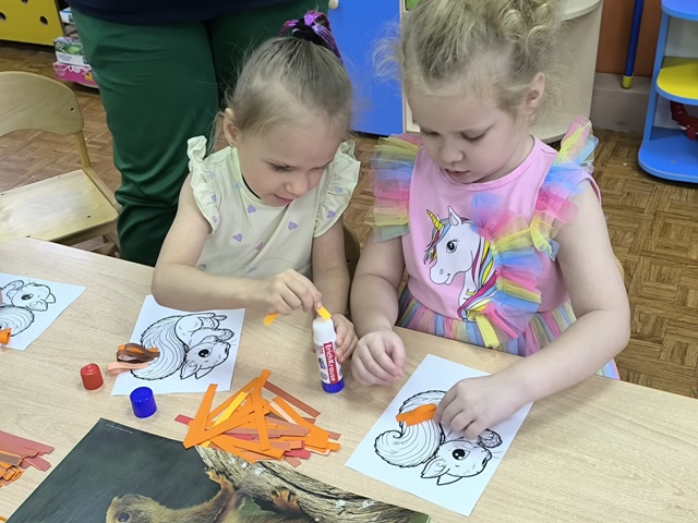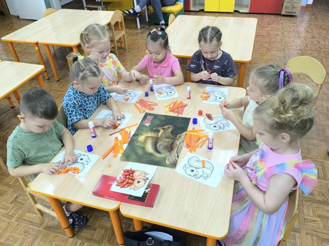 Завершилась наша встреча творческим мастер-классом. Каждый сделал пушистый хвост из ярких полосочек бумаги для своей собственной белочки-красавицы. Складывали, клеили – и вуаля! Получились такие милейшие бельчата, которых ребята забрали себе домой.