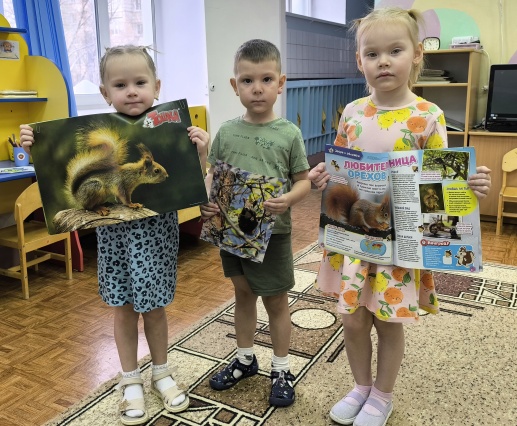 Ребята намного ближе познакомились с обычной белочкой – не той, что из сказок, а настоящей лесной проказницей! Библиотекарь рассказала много интересных фактов: белки – настоящие садовники, они прячут сотни орешков, часть из них забывают, а затем из них вырастают деревья. Белочки прыгают в длину на 4 метра, и хвост им нужен не только для красоты – они пользуются им как рулём, а зимой хвост согревает лучше любого одеяла.