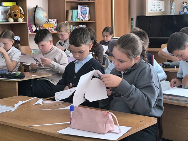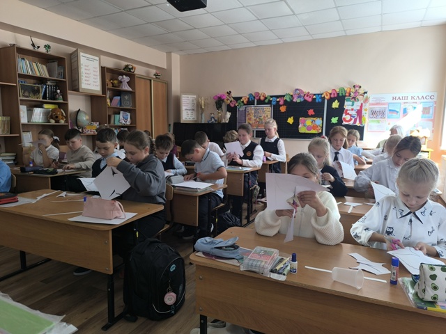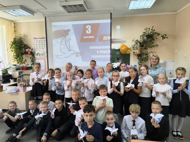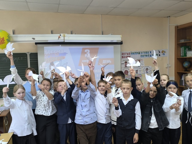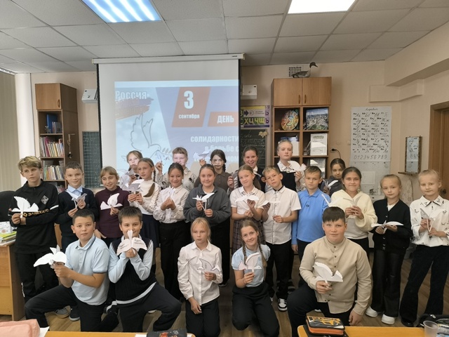 Потом мы перешли к мастер-классу «Голубь мира». Дети узнали, что голубь – символ надежды ещё с давних времён, когда он принёс оливковую ветвь, обещающую мир. Каждый с трепетом вырезал своего голубя, украшая его пожеланиями: «Миру мир!», «Пусть никто не боится!», «Добра всем людям!». Дети работали с вдохновением, и класс наполнился теплом и надеждой. Ребята уходили с сияющими глазами, обещав быть внимательными и рассказывать родителям о Дне солидарности в борьбе с терроризмом. Они поняли, что их маленькие поступки – звонок взрослым, доброта друг к другу – могут стать большой силой!