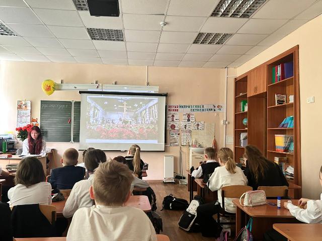 Библиотекарь рассказала, что 3 сентября – День солидарности в борьбе с терроризмом. Это день, когда мы вспоминаем всех, кто пострадал от злых поступков, и благодарим героев – спасателей, врачей, обычных людей, которые помогают. Ребята с грустью слушали об одной из самых страшных трагедий, которая произошла в 2004 году в Беслане. С трепетом в голосе вспоминали события прошлого 2024 года, теракт в «Крокус Сити Холле». Они поделились тем, что слышали в новостях об этом, и с восхищением вспоминали героев событий.