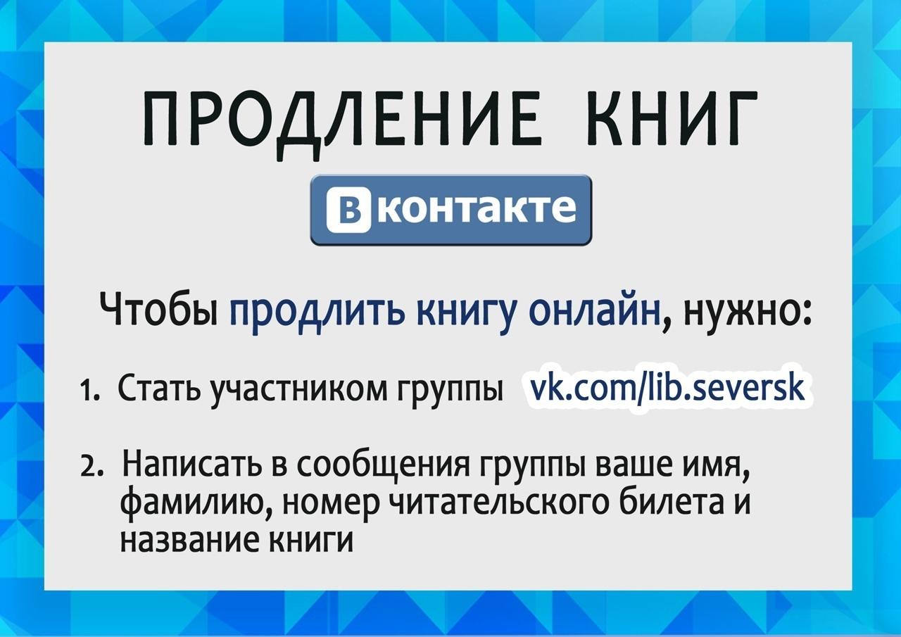 Продлить книги можно в нашем сообществе ВК или по следующим телефонам: