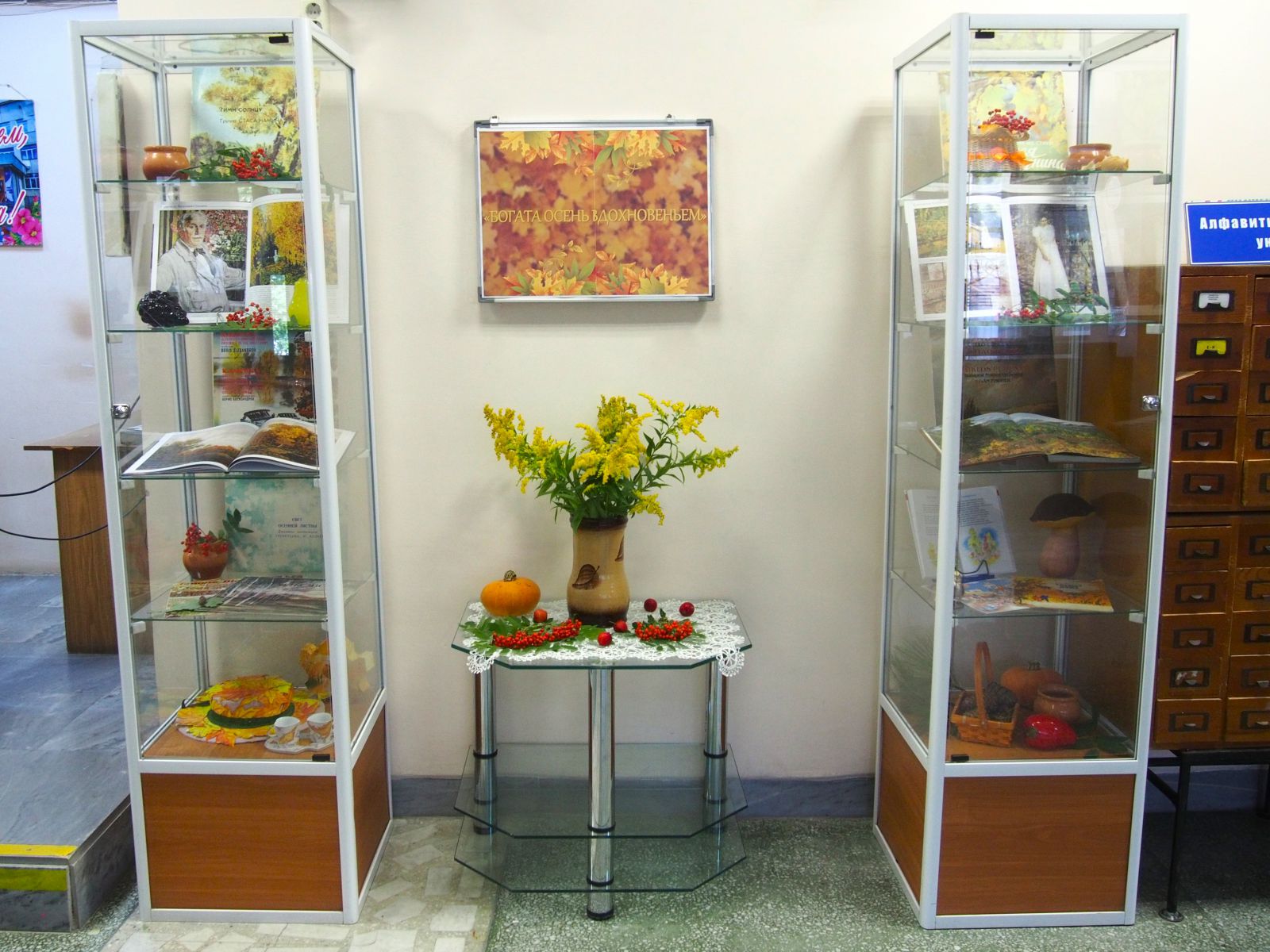 В холле Центральной городской библиотеки гостеприимно распахнула свои двери выставка, воплотившая в себе дыхание осеннего волшебства и пробуждающая чувство восторга перед щедростью природы.