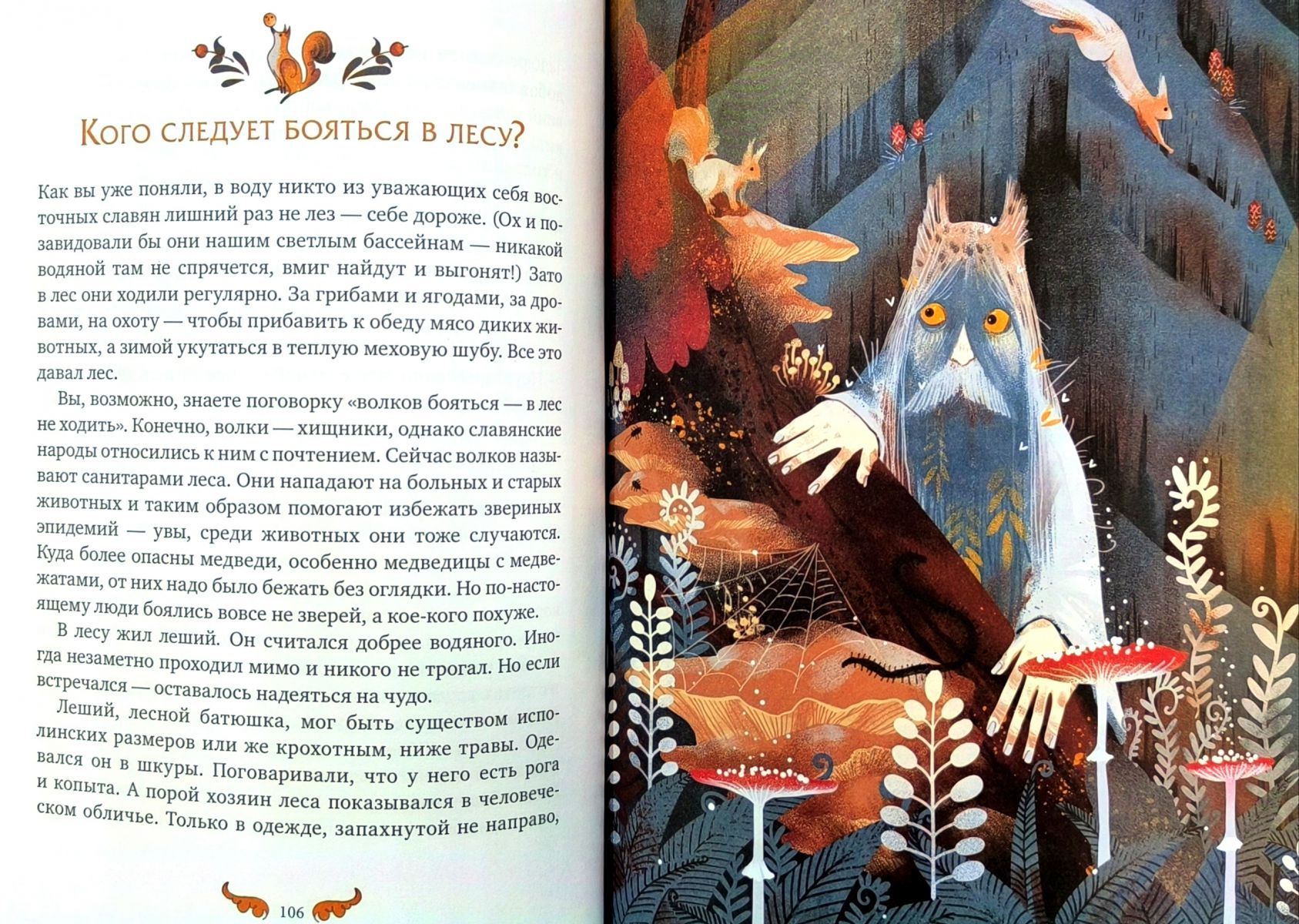 С точки зрения полноты информации, здесь всё продуманно до мелочей. Авторы опираются на старинные источники – от былин и сказок до исторических записей, – чтобы восстановить то, что не сохранилось в чистом виде. Вы найдёте всех славянских богов: от грозного Перуна с его молниями до мудрой Мокоши, плетущей нити судьбы; от лесных духов вроде леших и кикимор до эпических фигур вроде Кощея Бессмертного и Бабы-Яги. Каждая глава логично перетекает в следующую, охватывая богов, героев, монстров и даже повседневные поверья. Это небольшой, но насыщенный том, где ничего не упущено, но и не перегружено деталями. Иллюстрации Анастасии Николаевой добавляют визуальной магии: они как окна в другой мир, яркие и детализированные.