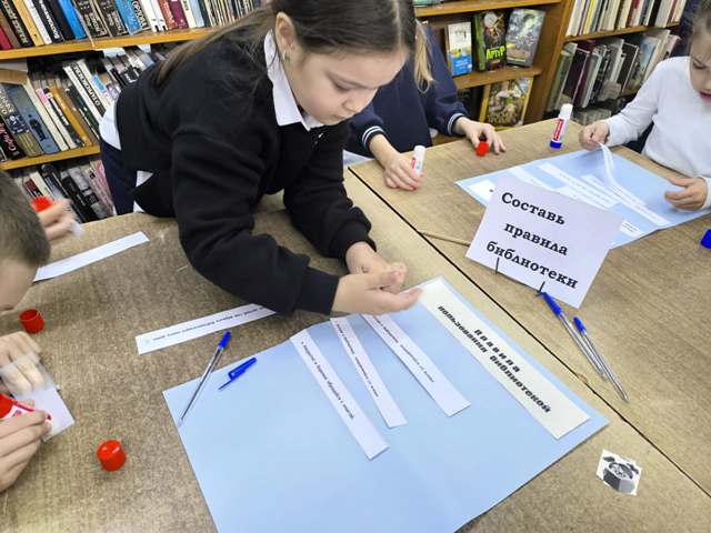 Завершающая точка маршрута – задание «Составь правила библиотеки». Дети творчески подошли к его выполнению и создали памятки правильного поведения в библиотеке.