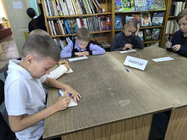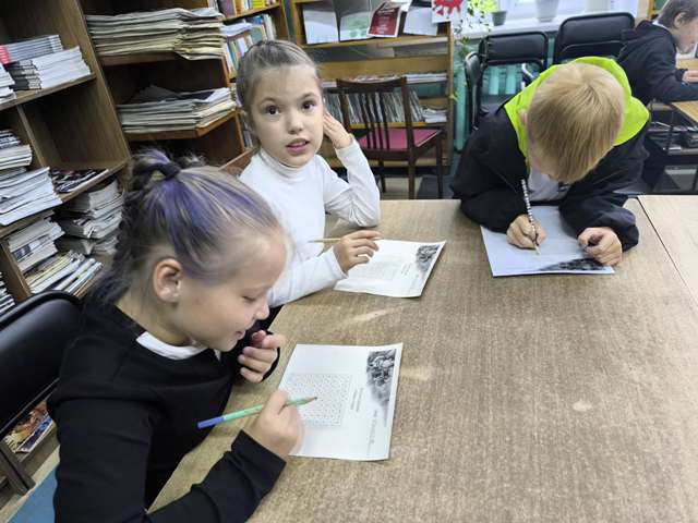 На станции «Филворд» школьники проявили смекалку, отыскивая слова, спрятанные в сетке букв и относящиеся к школе и библиотеке.