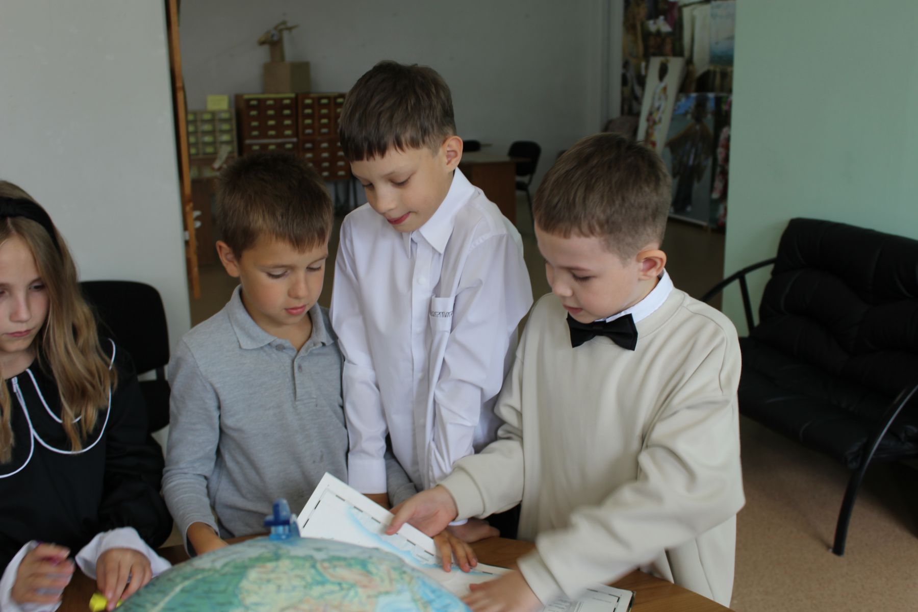 Для ребят из 3 В класса сотрудники читального зала провели увлекательную кругосветку. У юных посетителей было аж шесть уроков: русский язык, геометрия, география, литература, биология и физкультура. «Как так? Таким маленьким и столько уроков?» – спросите вы. Секрет прост: уроки длились всего по 5 минут. Зато сколько всего наши ученики успели сделать! Ребята проверили свою грамотность, отыскали на глобусе далекие страны, вспомнили цитаты из любимых сказок и даже посоревновались в меткости. Завершилась кругосветка определением победителей и вручением сладких призов.