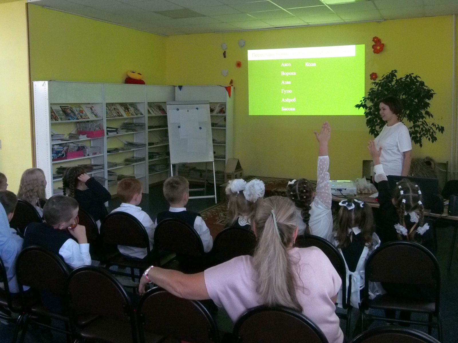 В это же время в молодежном отделе гостили ученики 2 Б класса. Они с удовольствием рассказали библиотекарям о том, чему научились за лето, и поделились впечатлениями от прочитанных книг. Ребята разгадывали ребусы, решали задачки, отгадывали слова и сюжеты сказок. Одной из самых веселых игр этой встречи стала игра в «Крокодила», когда одна команда изображала неких животных, а другая – с азартом пыталась понять, кто же сейчас перед ними. Закончилось мероприятие разминкой под веселую музыку и вручением сладостей.