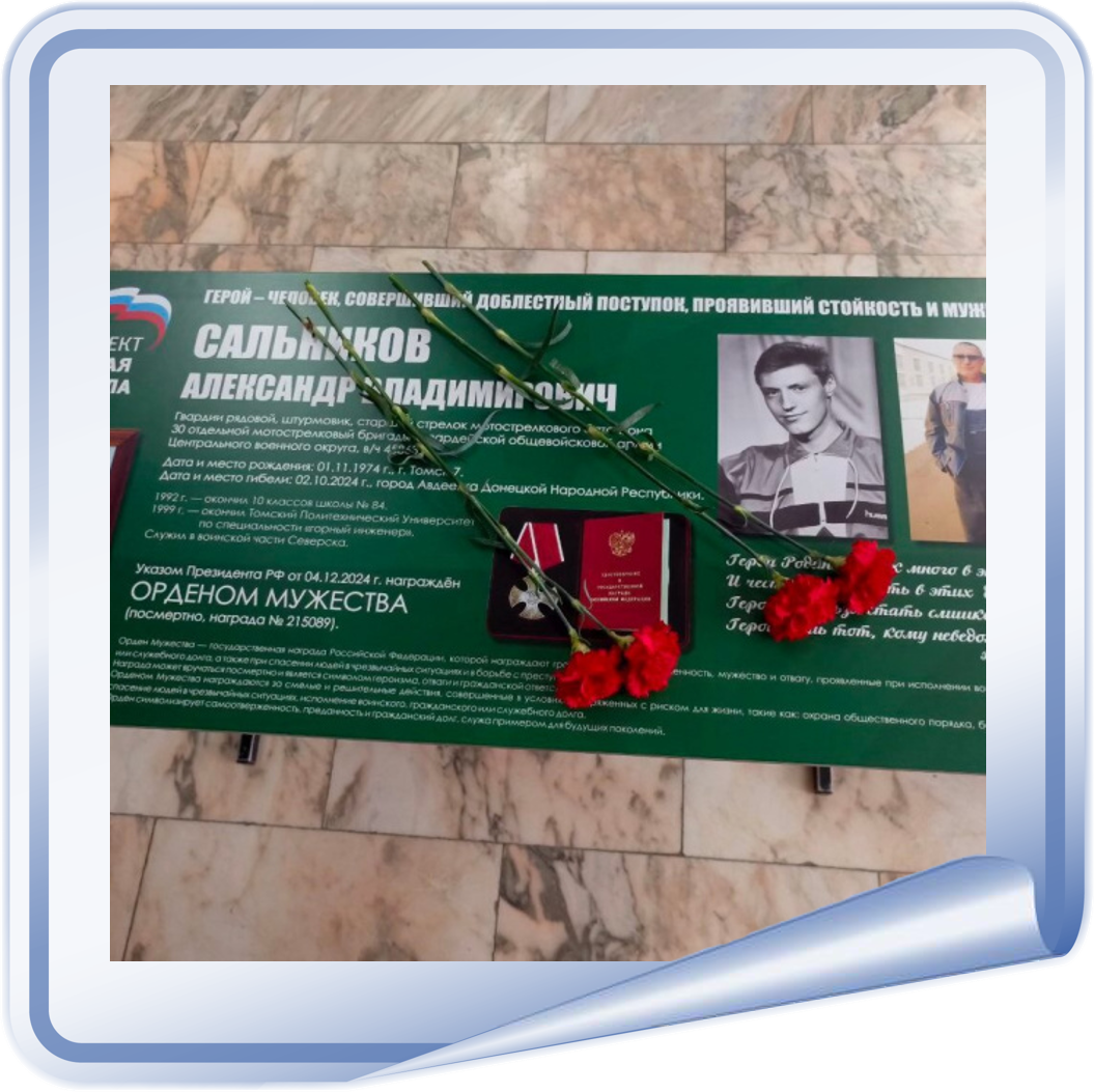 В школе № 84 состоялась торжественная церемония открытия Парты Героя в честь погибшего в ходе специальной военной операции Александра Сальникова.